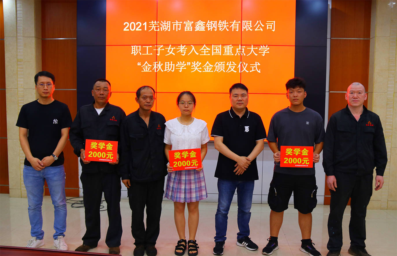 8月11日下午,在蕪湖市富鑫鋼鐵有限公司舉行的2021“金秋助學(xué)”獎(jiǎng)金發(fā)放儀式上,向今年考取電子科技大學(xué)、東南大學(xué)、...