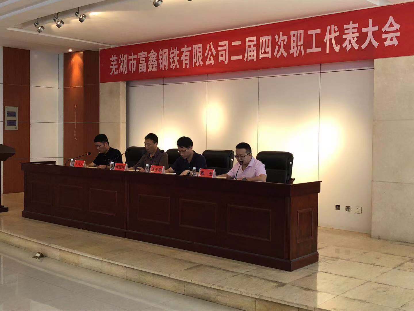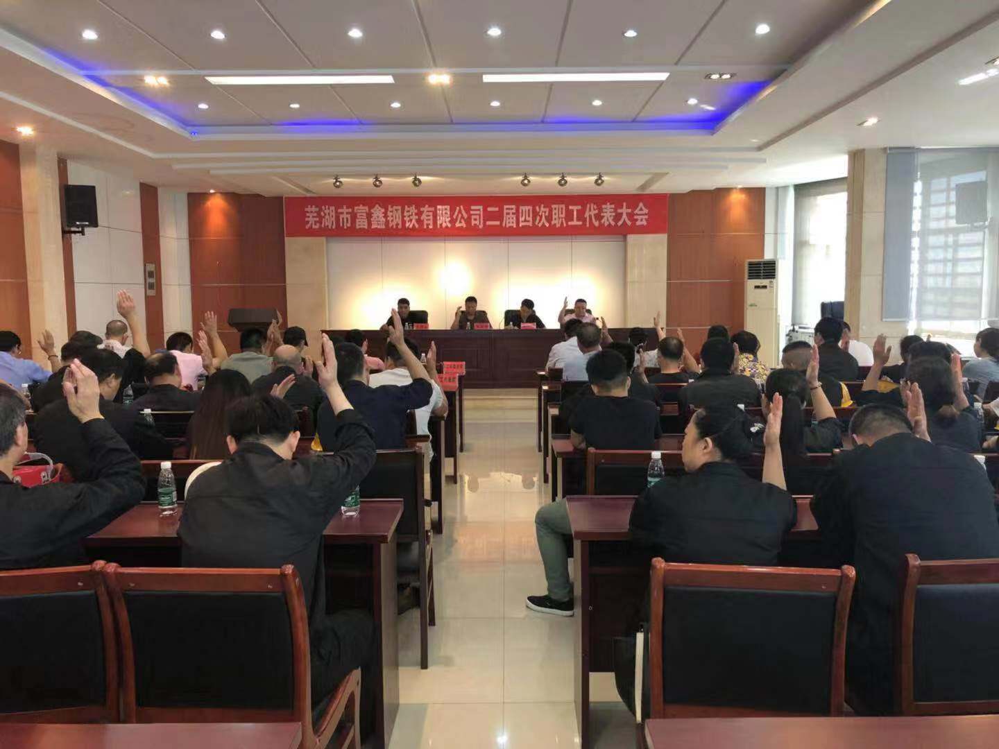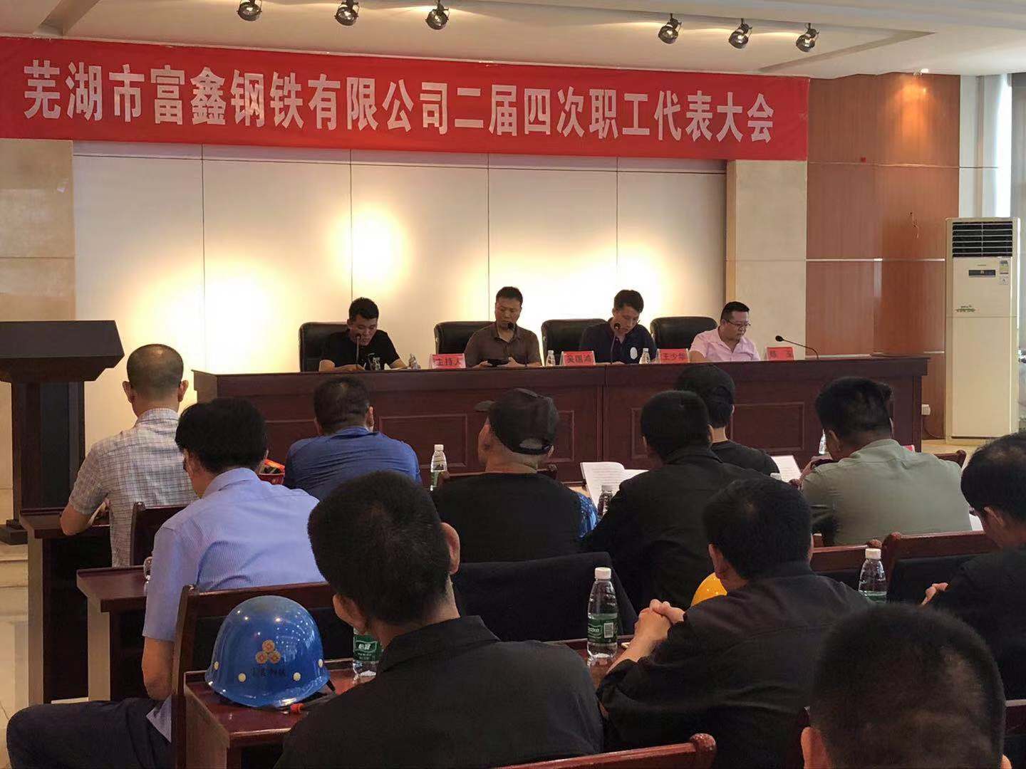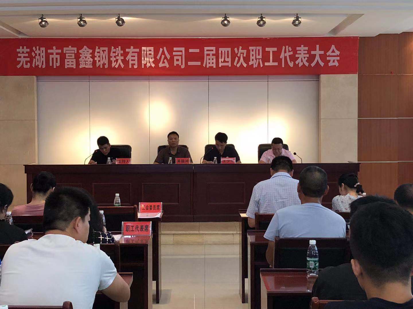 2019年8月6日上午9時(shí)蕪湖市富鑫鋼鐵有限公司第二屆第四次職工代表大會(huì)在雄壯的國(guó)歌聲中隆重開幕!受公司黨委書記王文奇同志委托,陳玉同志代表公司黨委對(duì)大會(huì)致辭!會(huì)上全體工會(huì)委員、職工代表精神飽滿,積極審議。并認(rèn)真舉手表決,全票審議通過了公司2019版《員工手冊(cè)修訂草案》和工會(huì)主席王少華同志作的題為《有效提升工會(huì)服務(wù)意識(shí) 共譜和諧發(fā)展新篇章》工會(huì)工作報(bào)告。最后由公司領(lǐng)導(dǎo)吳國(guó)鴻同志致大會(huì)閉幕辭!此次大會(huì)回顧了2018年公司各部門全年的工作,并且號(hào)召全體員工在公司黨委的堅(jiān)強(qiáng)領(lǐng)導(dǎo)下,統(tǒng)一思想,堅(jiān)定信心,攻堅(jiān)克難,開拓創(chuàng)新,全力以赴,為全面實(shí)現(xiàn)2019年公司生產(chǎn)發(fā)展目標(biāo)而努力奮斗!