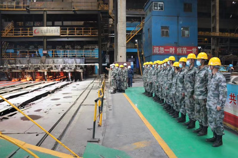 5月20日上午,陽光明媚,在這個愛意滿滿的日子里,“最可愛的人”駐繁部隊官兵及近50名新入伍戰(zhàn)士一行走進富鑫公司觀摩煉鐵、煉鋼生產(chǎn)流程?;顒又?,全體官兵軍容嚴整,步伐一致,體現(xiàn)了新時代的革命軍人斗志昂揚的精神面貌?;顒咏Y束后,該部隊政委表示,此次觀摩活動,十分有意義,感受深刻,富鑫鋼鐵的一線職工們給新入伍的同志上了一堂生動形象的國防教育課。通過現(xiàn)場觀看煉鐵、煉鋼的生產(chǎn)流程,教育全體官兵,只有在革命的艱難困苦中戰(zhàn)勝敵人,在生活的巨大壓力中戰(zhàn)勝自己,只有把自己的追求和祖國、人民的利益聯(lián)系在一起的時候,才會創(chuàng)造奇跡,才會成長成為鋼鐵戰(zhàn)士,牢固樹立為革命獻身,鋼鐵般的意志和頑強奮斗的品質。